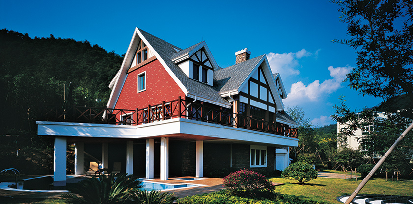 在立面設(shè)計(jì)上,采用了北美風(fēng)格、現(xiàn)代風(fēng)格和折中混合式風(fēng)格等,使設(shè)計(jì)語言有一定的趣味性,居住的感覺更為強(qiáng)烈。