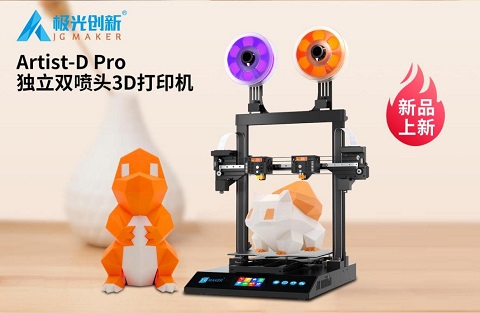 要發(fā)揮更多創(chuàng)意和DIY,非它莫屬:Artist-D pro是極光創(chuàng)新產(chǎn)品線中最年輕的一款產(chǎn)品,獨立式雙噴頭結(jié)構(gòu)支持4種打印模式,雙噴頭可搭配出各種耗材結(jié)合玩法,支持代碼開源讓創(chuàng)意er盡情打造自己心目中的DIY好助手??觳饑婎^、柔性磁貼、補償調(diào)平等多項前沿功能的整合,讓這款機器免除了大部分使用過程中的繁瑣,小白和大神都能玩出花樣。