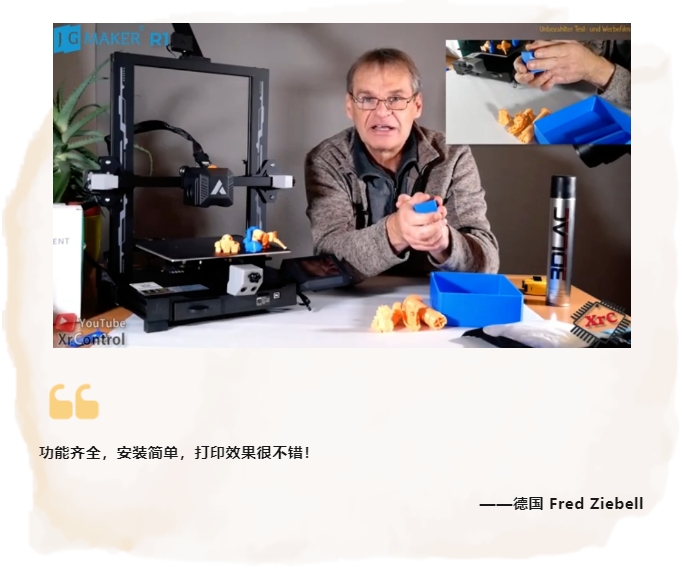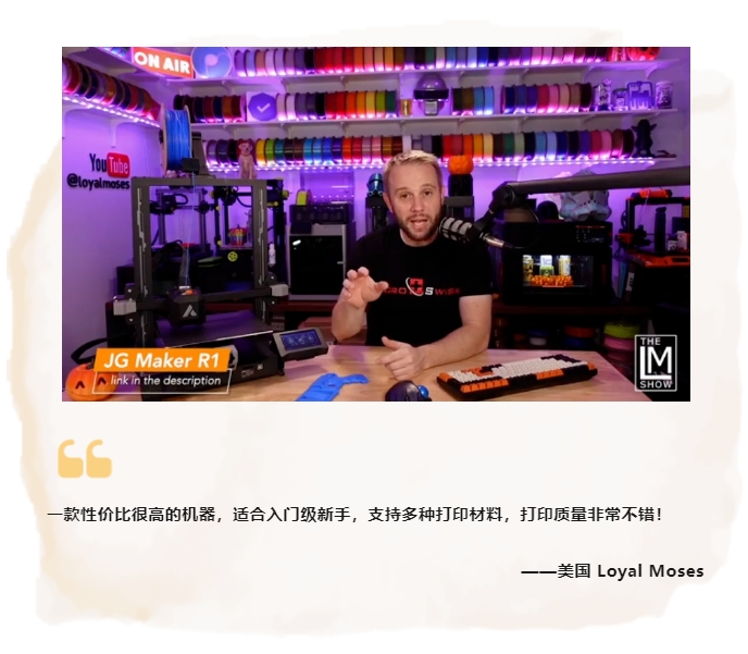 最近幾個月,極光創(chuàng)新R1憑借其極具人性化的簡單設(shè)計和高精度的打印質(zhì)量,被海外市場一致認(rèn)為是最具性價比的入門級3D打印機(jī),受到眾多消費者的喜愛,許多權(quán)威人士和社媒博主都對這款3D打印機(jī)給予了高度評價,認(rèn)為它是入門級用戶的理想選擇。