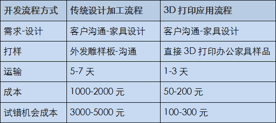 從傳統(tǒng)設(shè)計加工模式到3D打印創(chuàng)新定制,3D打印技術(shù)的大潛力,在辦公家具定制化中發(fā)揮著非常大的優(yōu)勢。設(shè)計師設(shè)計好一張桌子的腳凳造型,然后用3D打印機直接打印出來進行結(jié)構(gòu)驗證,驗證沒有任何問題就會進行下一步鑄造。這在很大程度上節(jié)省了開發(fā)時間,為企業(yè)贏得搶占市場的先機,獲得客戶的信任。