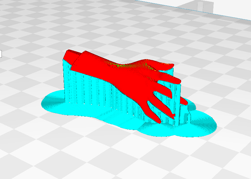 (如圖,豎直打印不僅能減少支撐面,而且還能提高整個(gè)手臂的精度效果,但是實(shí)際打印中,由于很纖細(xì)極容易失敗,只能犧牲表面效果來(lái)保證成功率。)